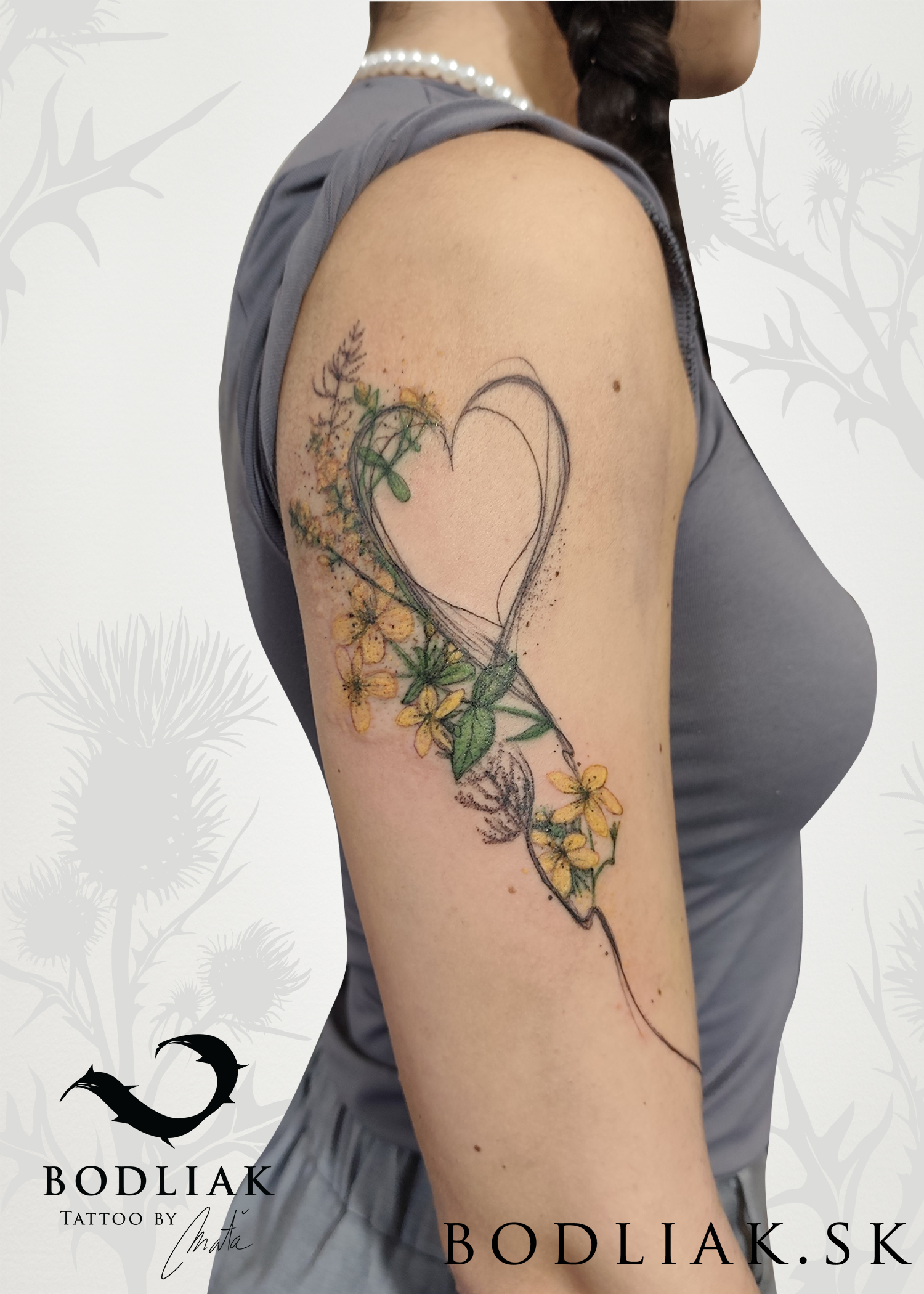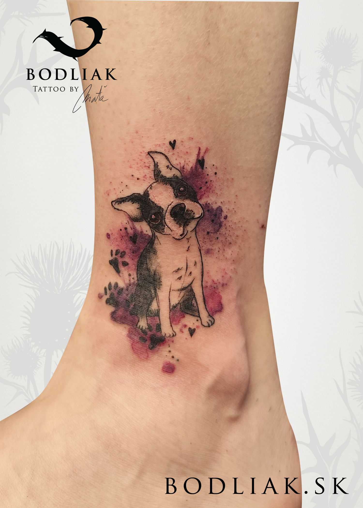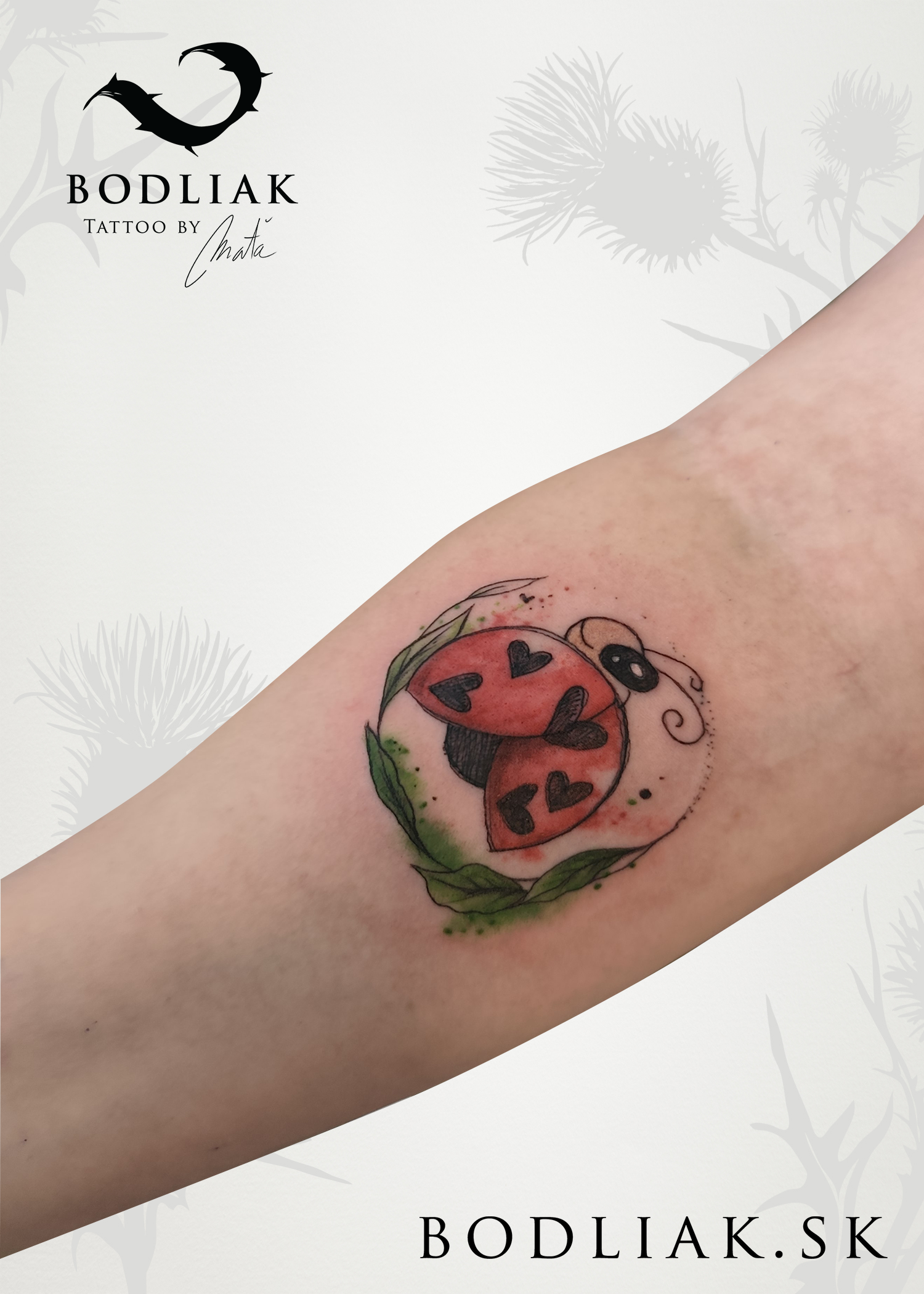 Kuk, volám sa Maťka. Som milovníčka prírody a umenia. Tetovanie je pre mňa niečo, vďaka čomu môžem tieto dve veci navždy spájať. Teda aspoň na tak dlho, ako vydrží ľudská koža. Ak zrovna netetujem, alebo netvorím obrazy, tričká, či niečo iné, som zašpinená od blatových psích labiek a chlpov. Nič z prírody a zvieracej ríše mi nie je cudzie, teda možno až na koníky, z tých mám trochu strach. :)