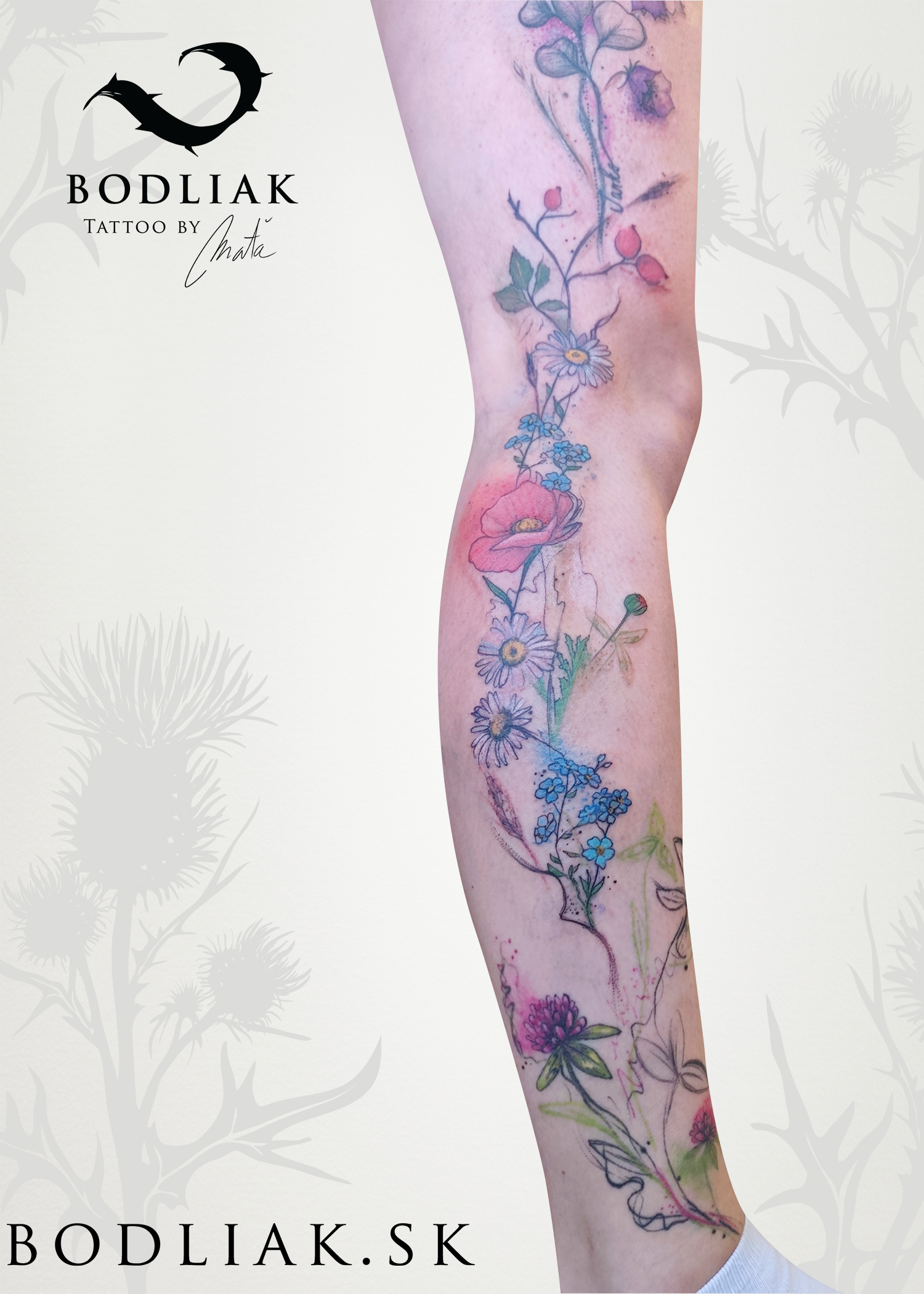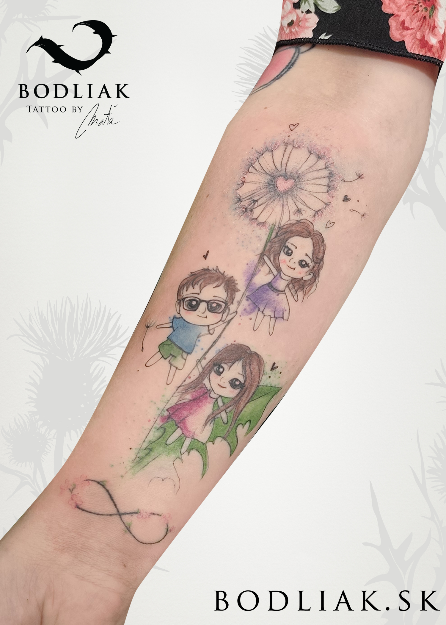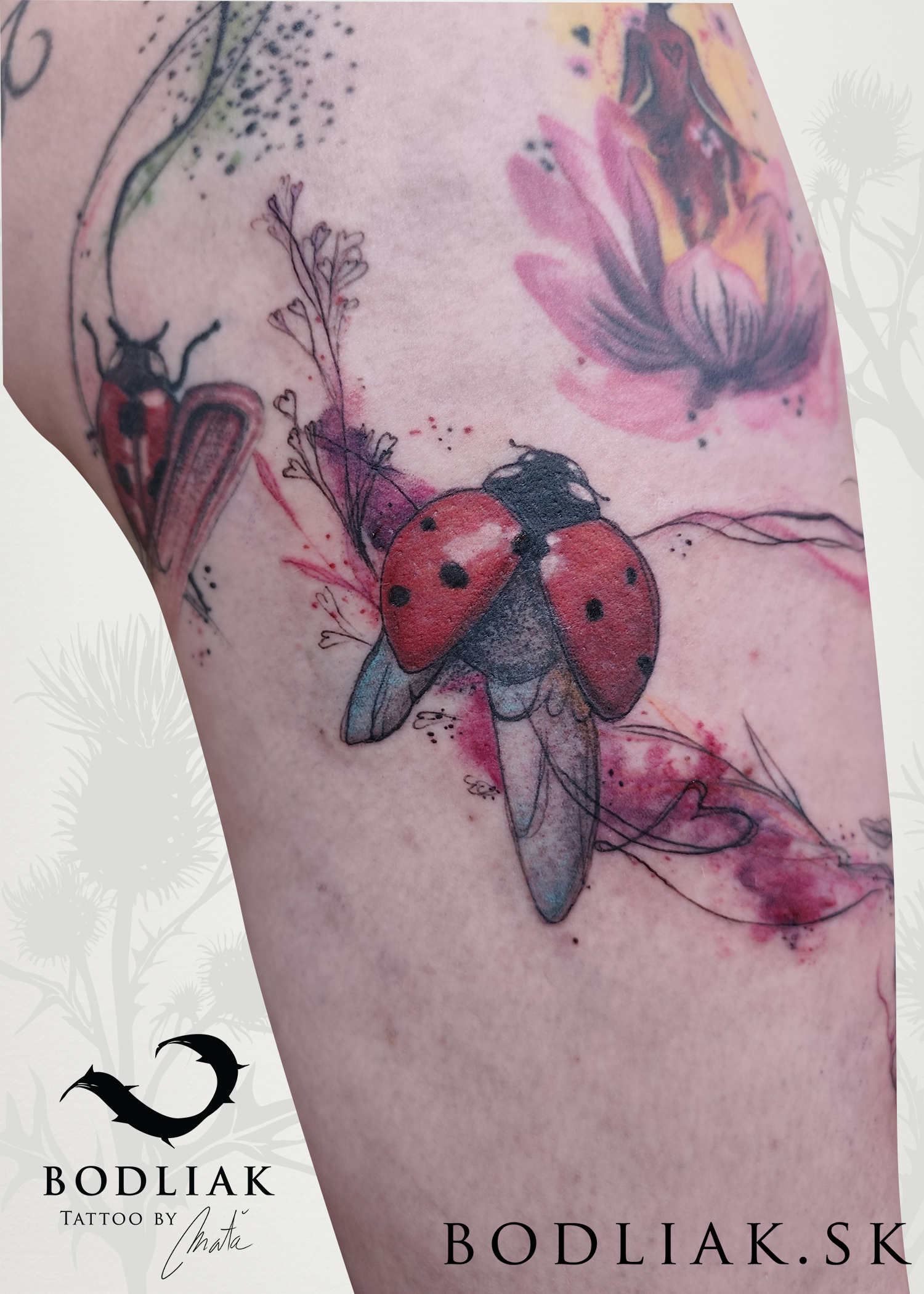 Kuk, volám sa Maťka. Som milovníčka prírody a umenia. Tetovanie je pre mňa niečo, vďaka čomu môžem tieto dve veci navždy spájať. Teda aspoň na tak dlho, ako vydrží ľudská koža. Ak zrovna netetujem, alebo netvorím obrazy, tričká, či niečo iné, som zašpinená od blatových psích labiek a chlpov. Nič z prírody a zvieracej ríše mi nie je cudzie, teda možno až na koníky, z tých mám trochu strach. :)